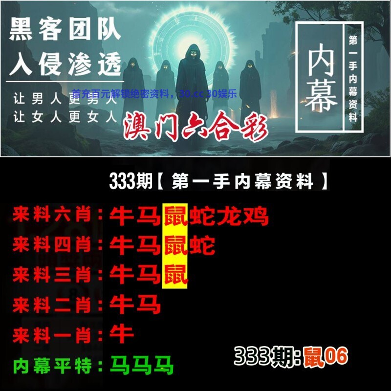 | 309期【绝杀二肖】〔虎+牛〕开:鼠06准 |