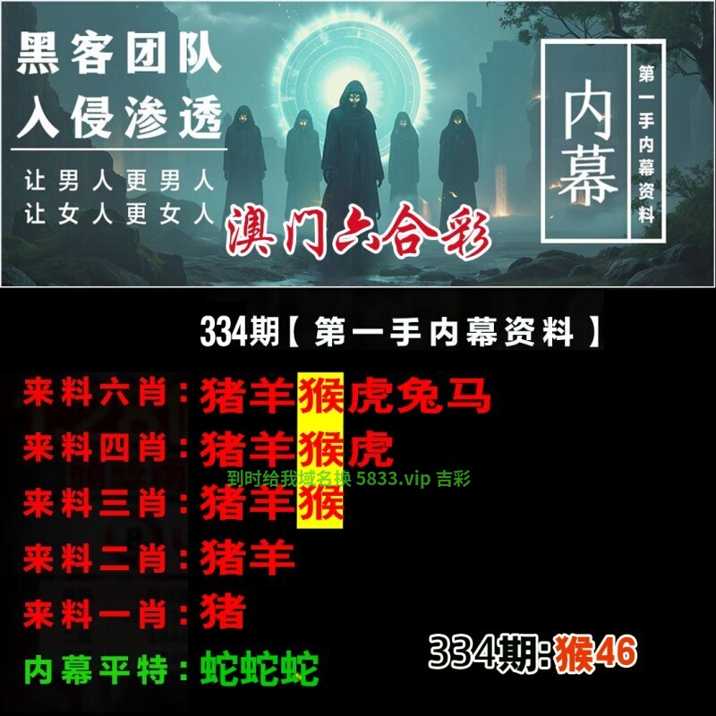 | 334期七肖 | 蛇鼠虎猴牛猪马 | 开:猴46 |