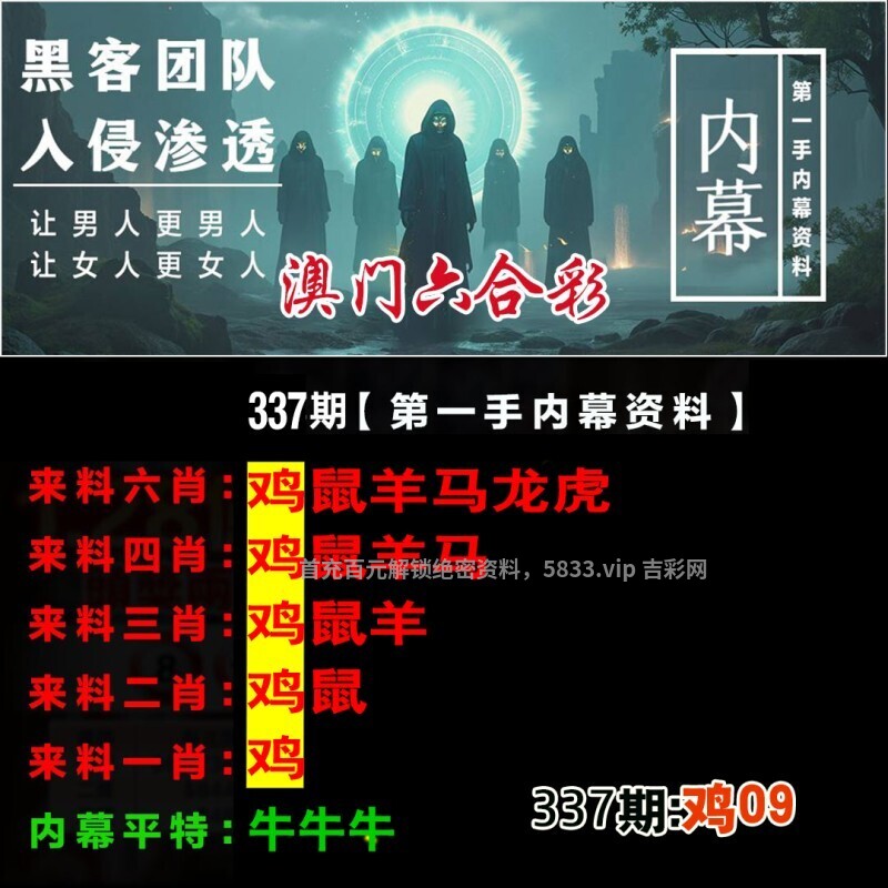 | 337期【绝杀二肖】〔猴+猪〕开:鸡09准 |